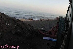 flashing cock at crowded beach leads to risky public cumshot