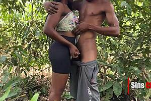 horny ebony couple fucks doggystyle bent over in tropical rainforest