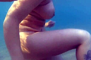 she masturbates alone in the water, her hairless body glistening under the sun.
