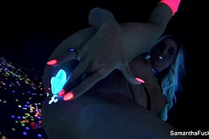 samantha saint performs a solo in black light.