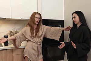 Karen Suggestively Licks The Ballerina Girl In Coffee Shop Scissoring
