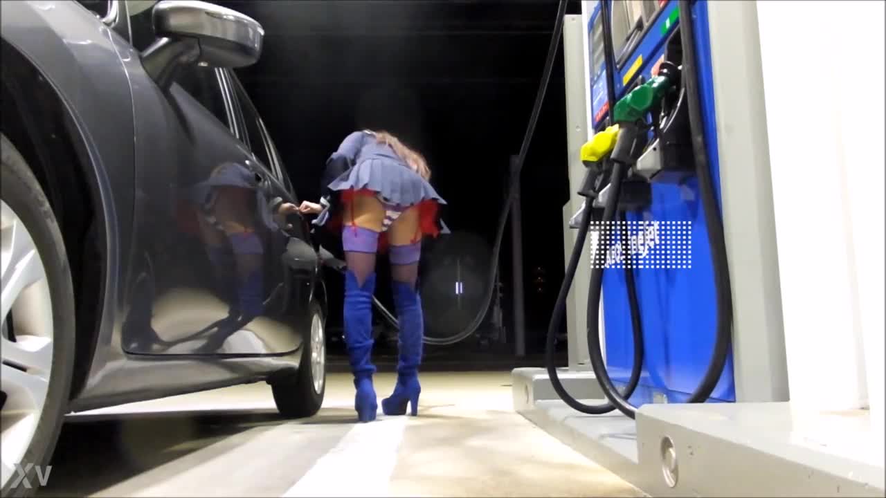 Crossdresser mini skirt in public gas station - स्कूल गर्ल मस्ती, गैस स्टेशन, अंतवस्‍त्र