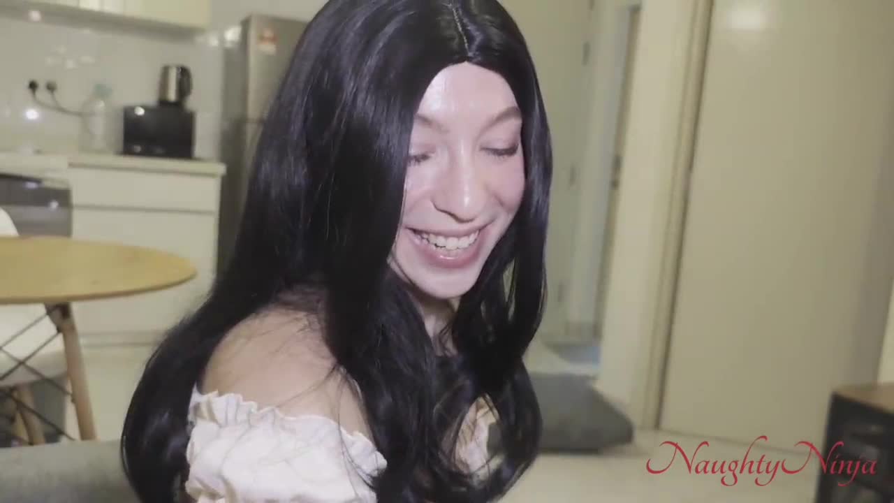Skinny latina milf moans loudly while fucking big cock with dildo and toys in homemade quickie