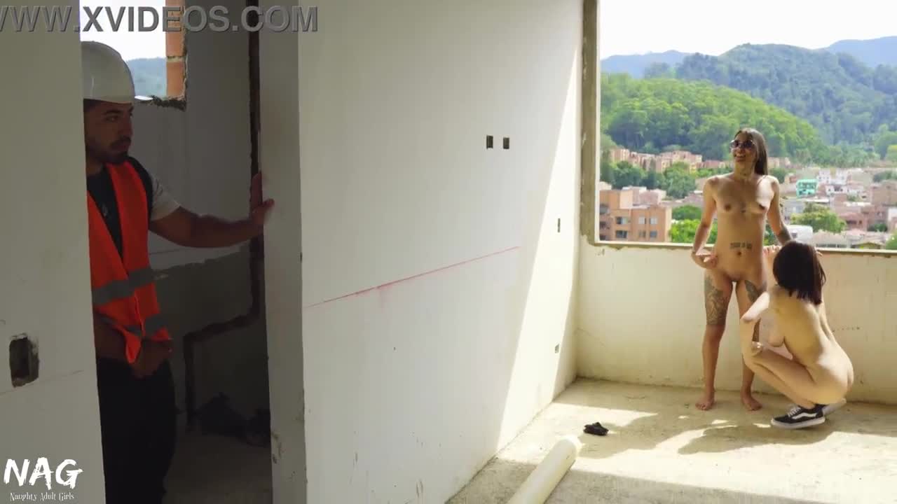 on the rooftop, hot lesbian girls have amazing sex with dildos