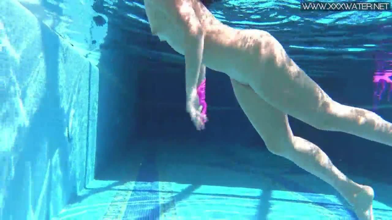 czech babe vesta strips and dives naked into swimming pool